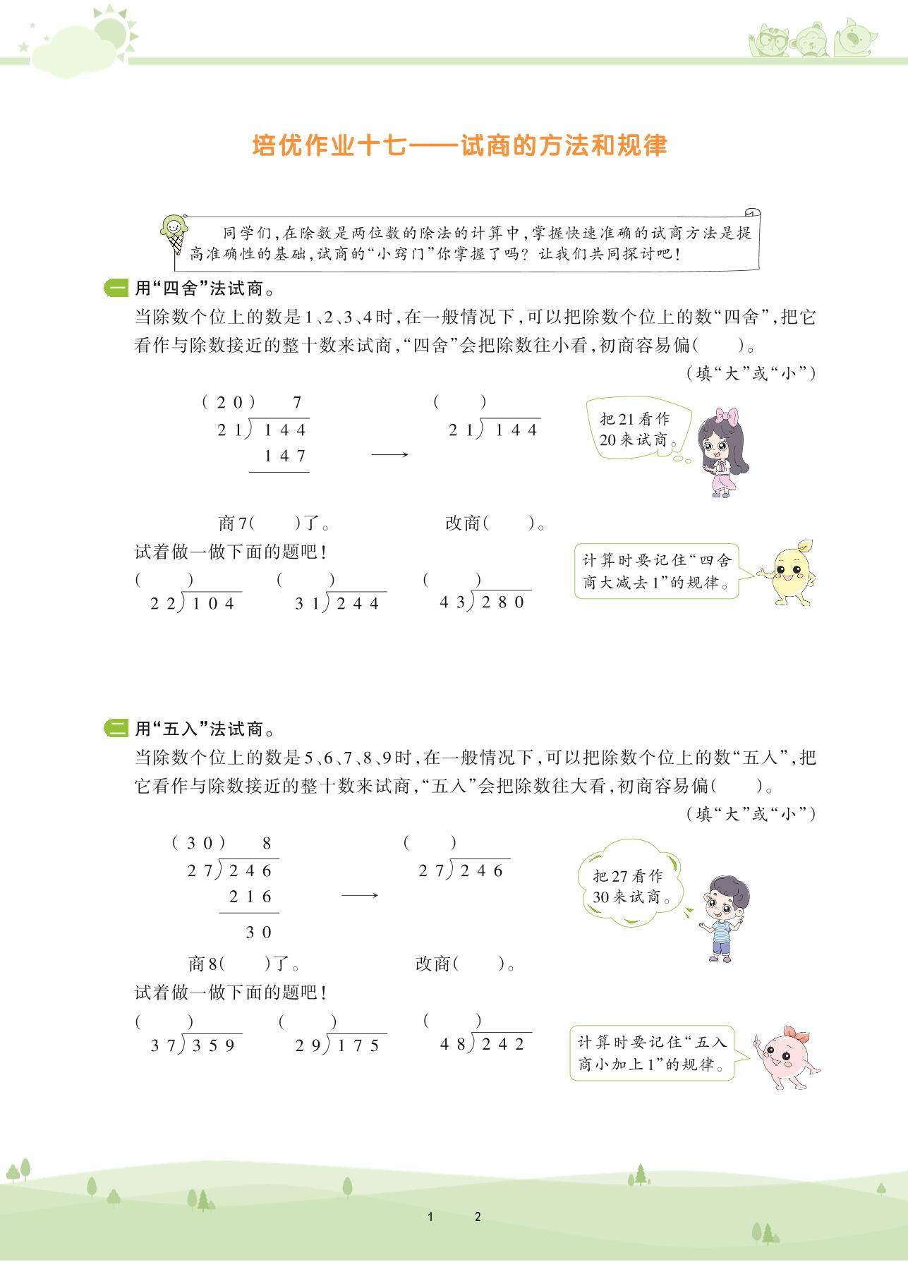 2020上册四年级数学人教版 第六单元 除数是两位数的除法——培优作业十七——试商的方法和规律