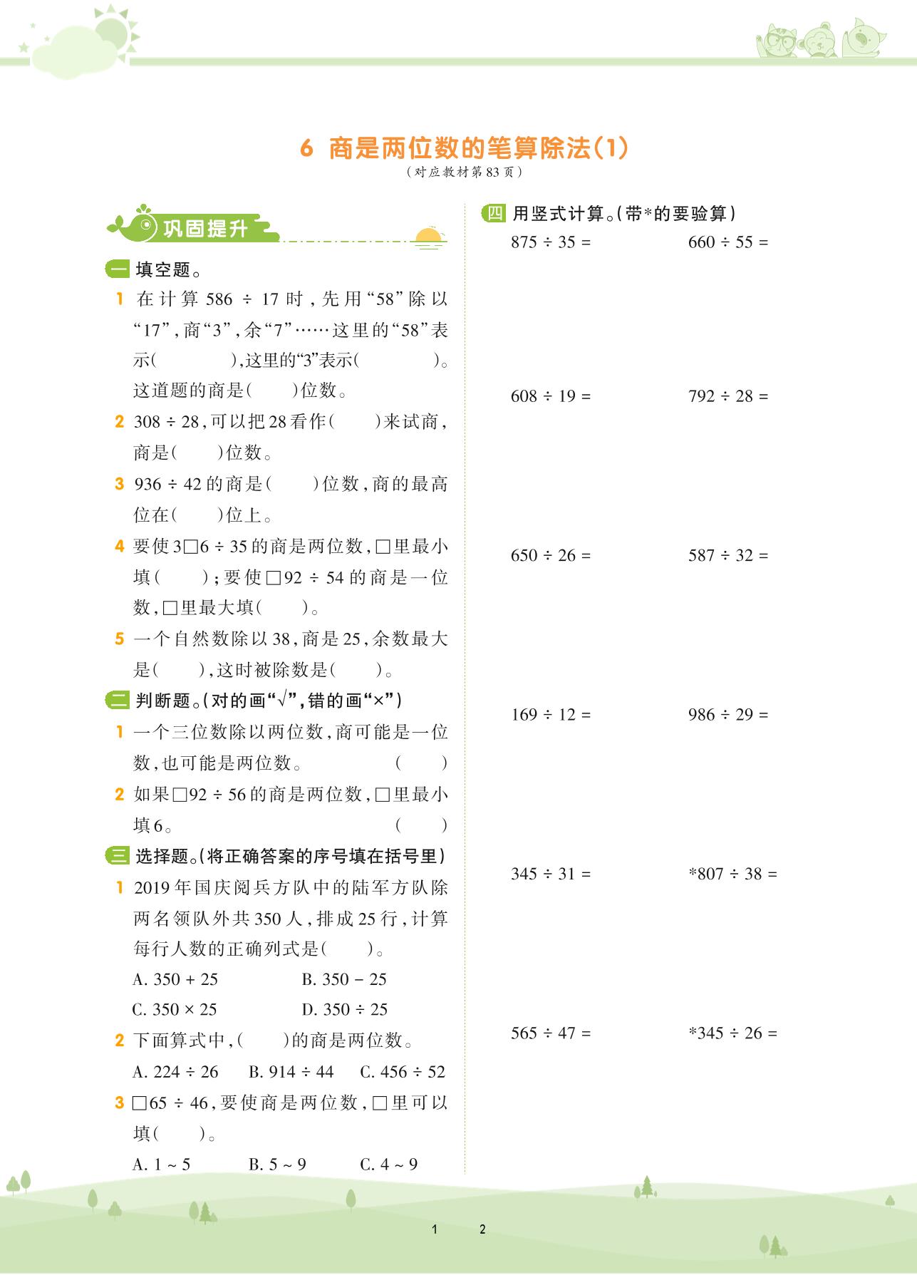 2020上册四年级数学人教版 第六单元 除数是两位数的除法——6 商是两位数的笔算除法(1)
