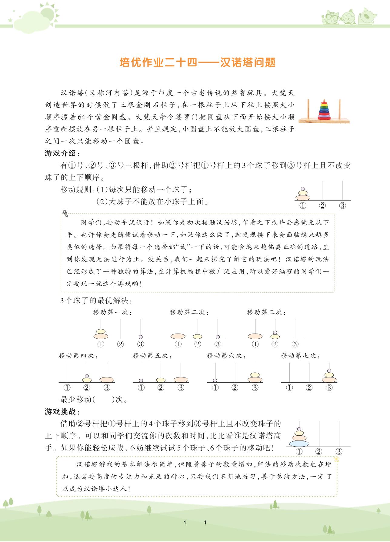2020上册四年级数学人教版 第八单元 数学广角——优化——培优作业二十四——汉诺塔问题