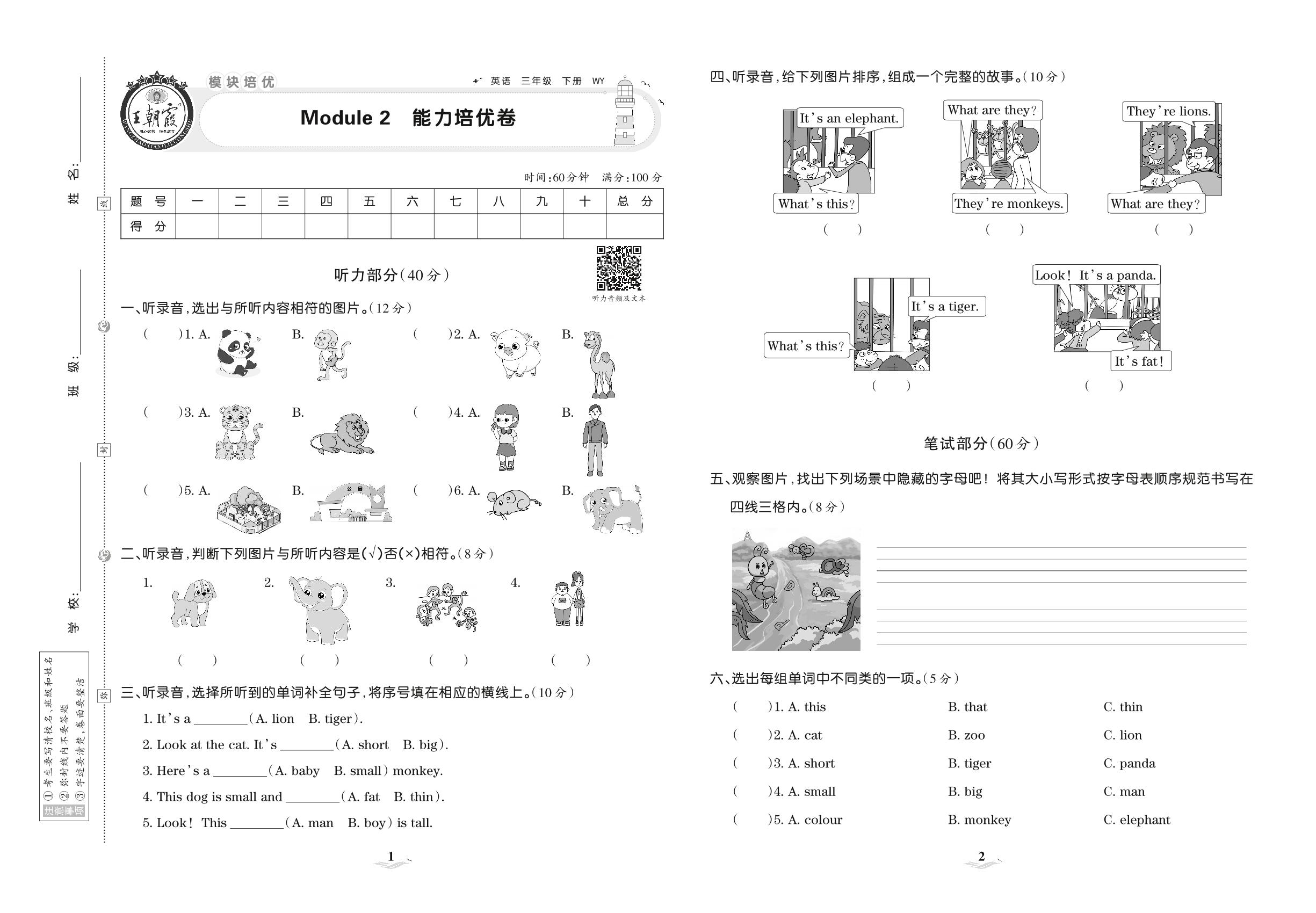 2021下册三年级英语外研版 Module 2 能力培优卷