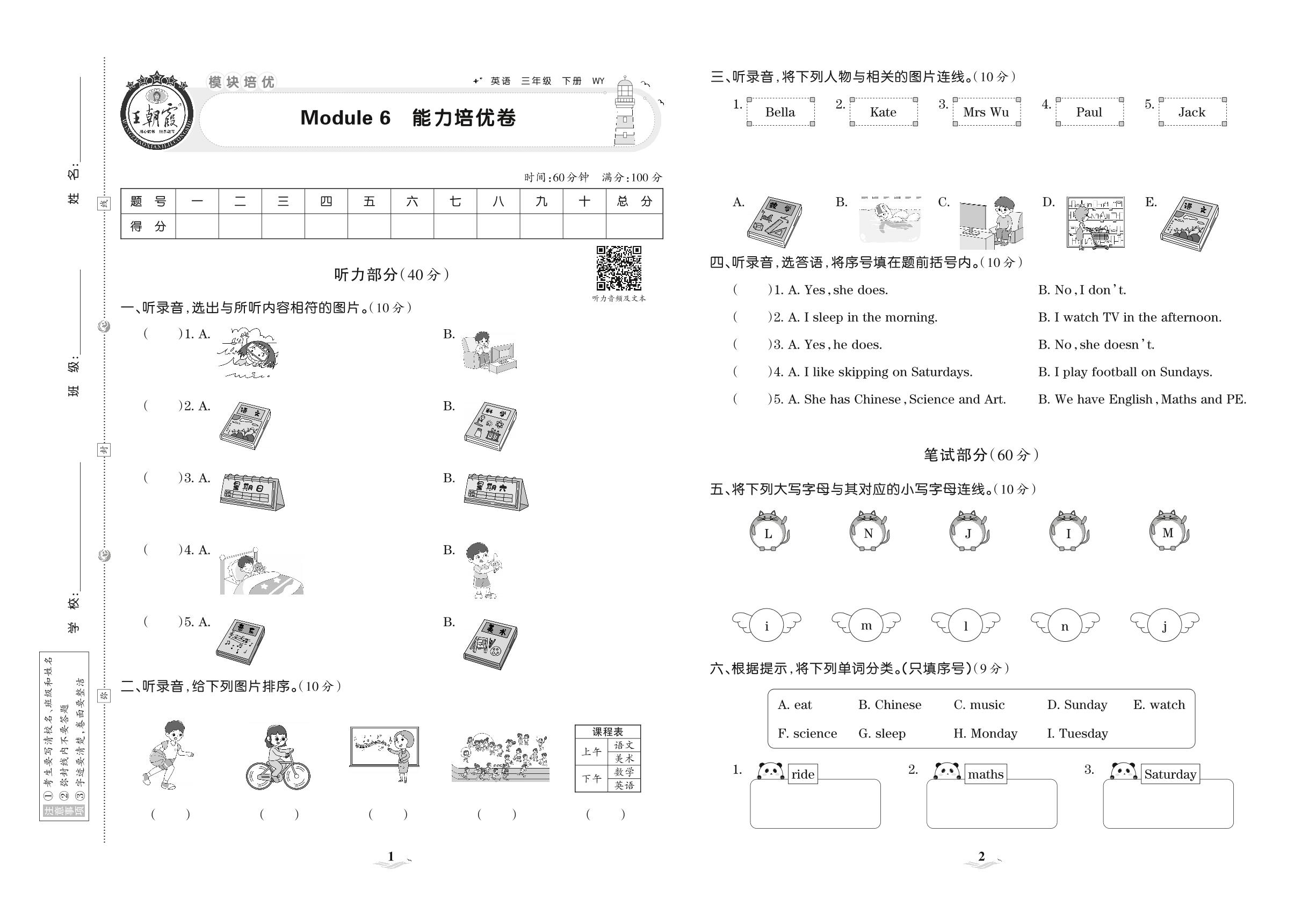 2021下册三年级英语外研版 Module 6 能力培优卷