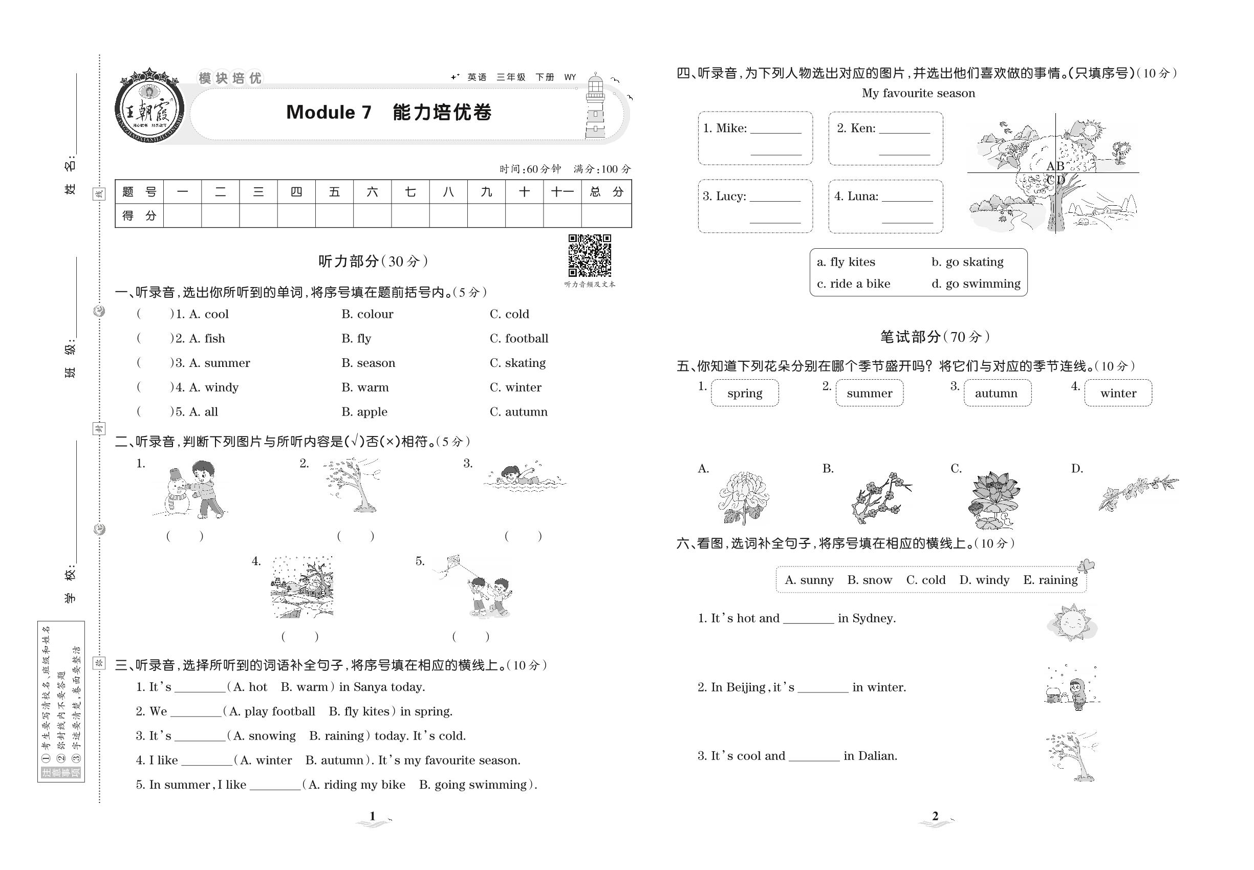 2021下册三年级英语外研版 Module 7 能力培优卷
