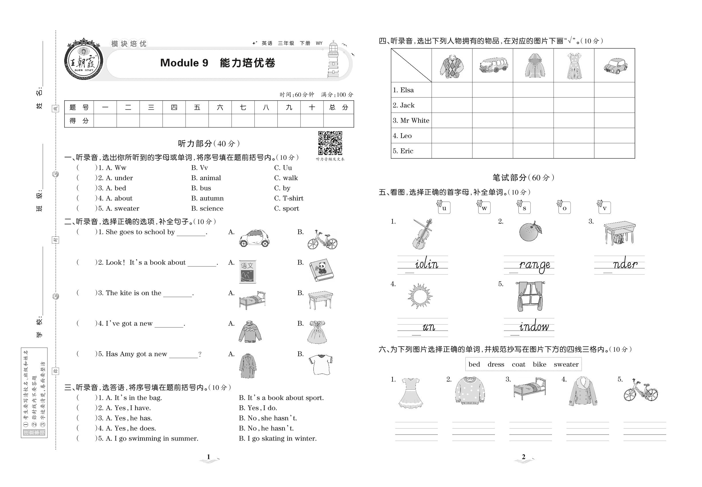 2021下册三年级英语外研版 Module 9 能力培优卷