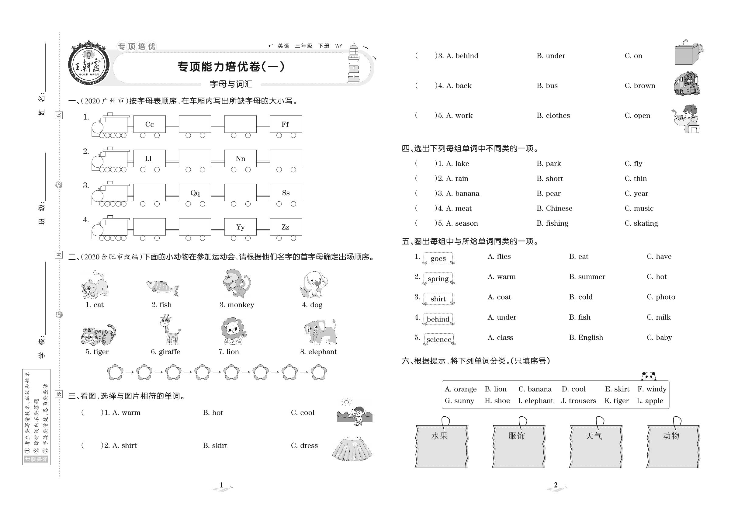 2021下册三年级英语外研版 专项能力培优卷(一) 字母与词汇