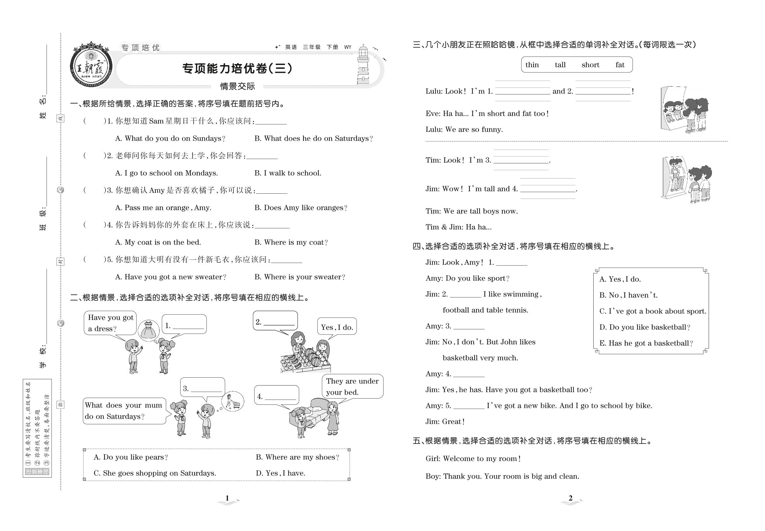 2021下册三年级英语外研版 专项能力培优卷(三) 情景交际