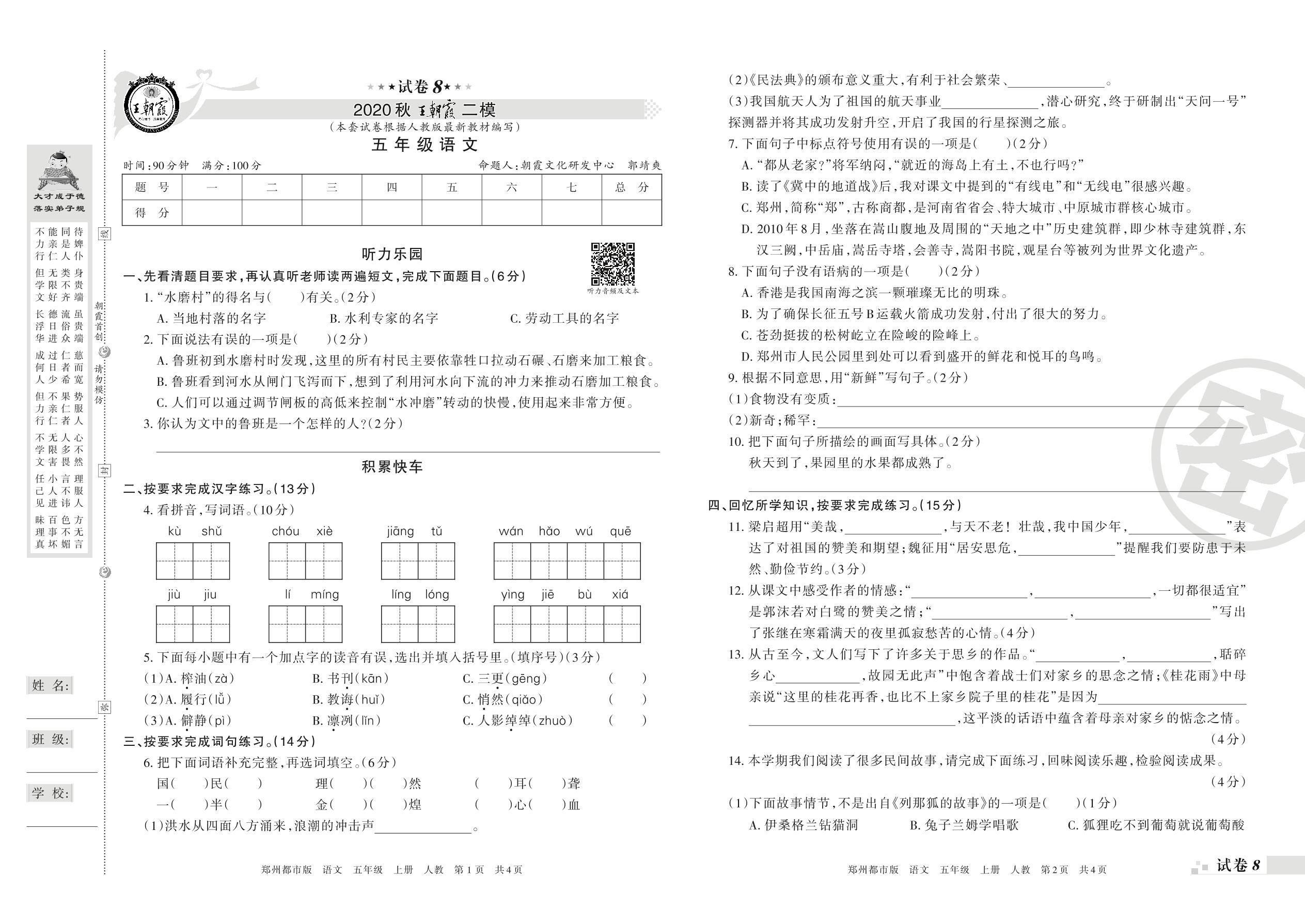 王朝霞期末模拟卷五年级上册语文(人教版)_R210801191557【8】
