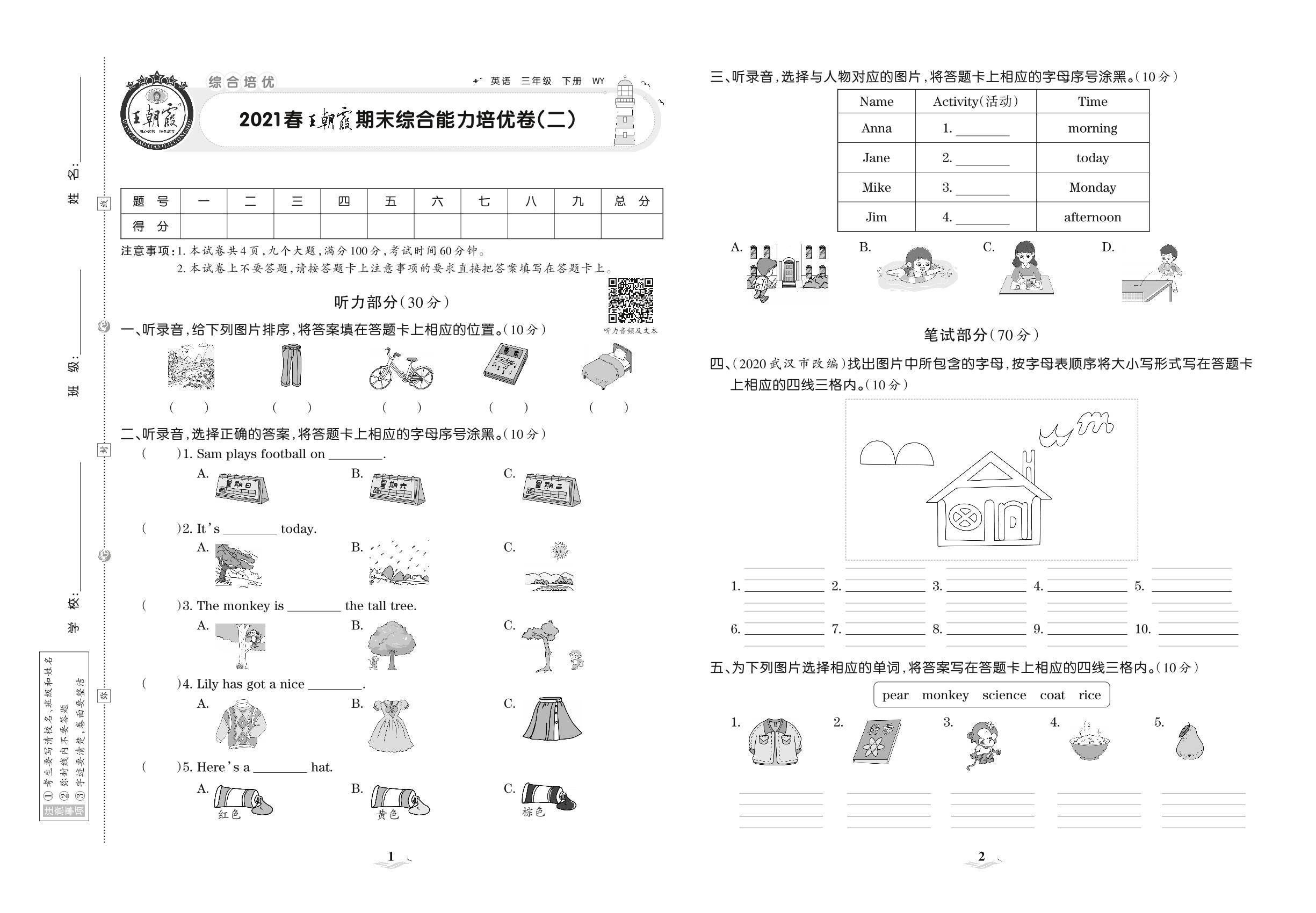 2021下册三年级英语外研版 王朝霞期末综合能力培优卷(二)