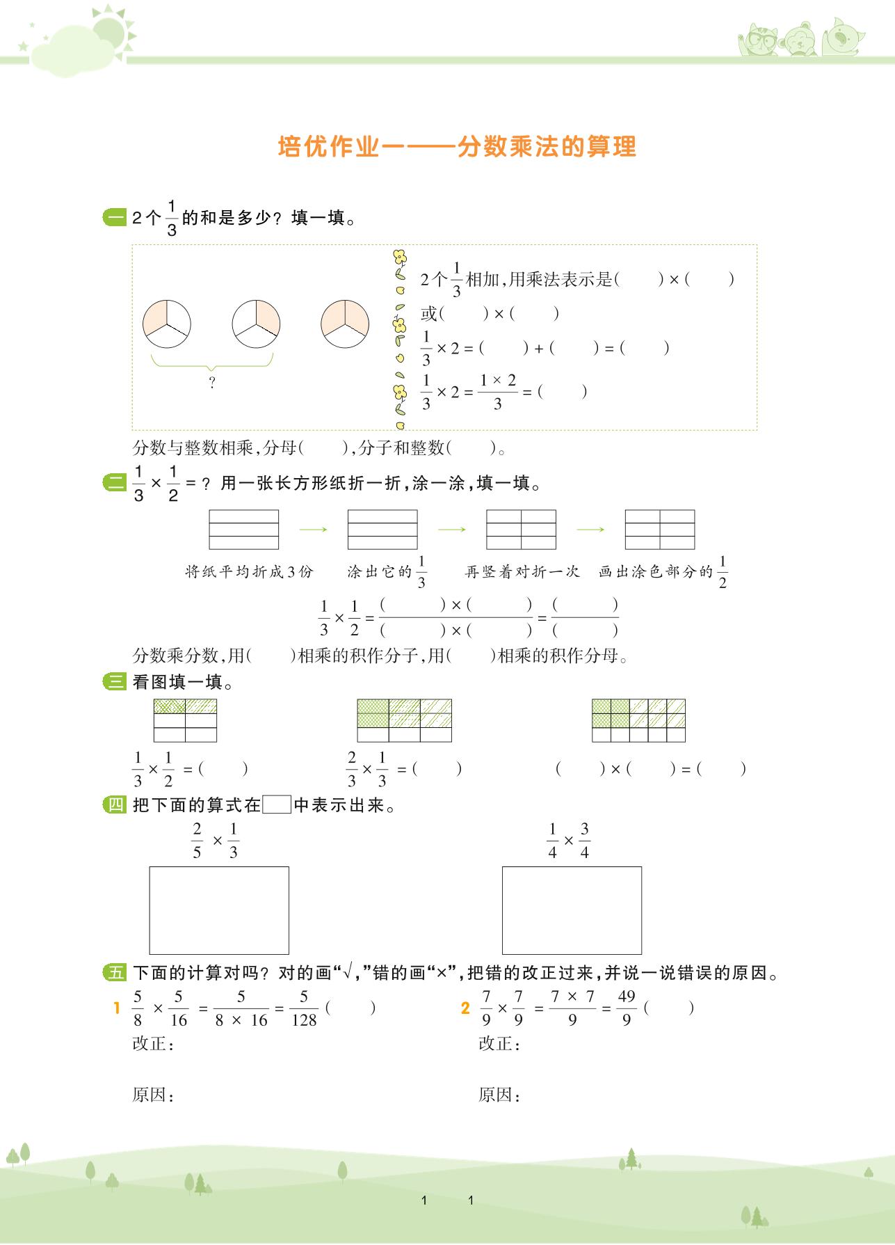 2020上册六年级数学人教版 第一单元 分数乘法——培优作业一 分数乘法的算理