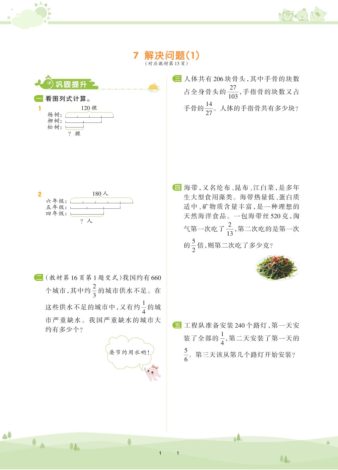 2020上册六年级数学人教版 第一单元 分数乘法——7 解决问题(1)