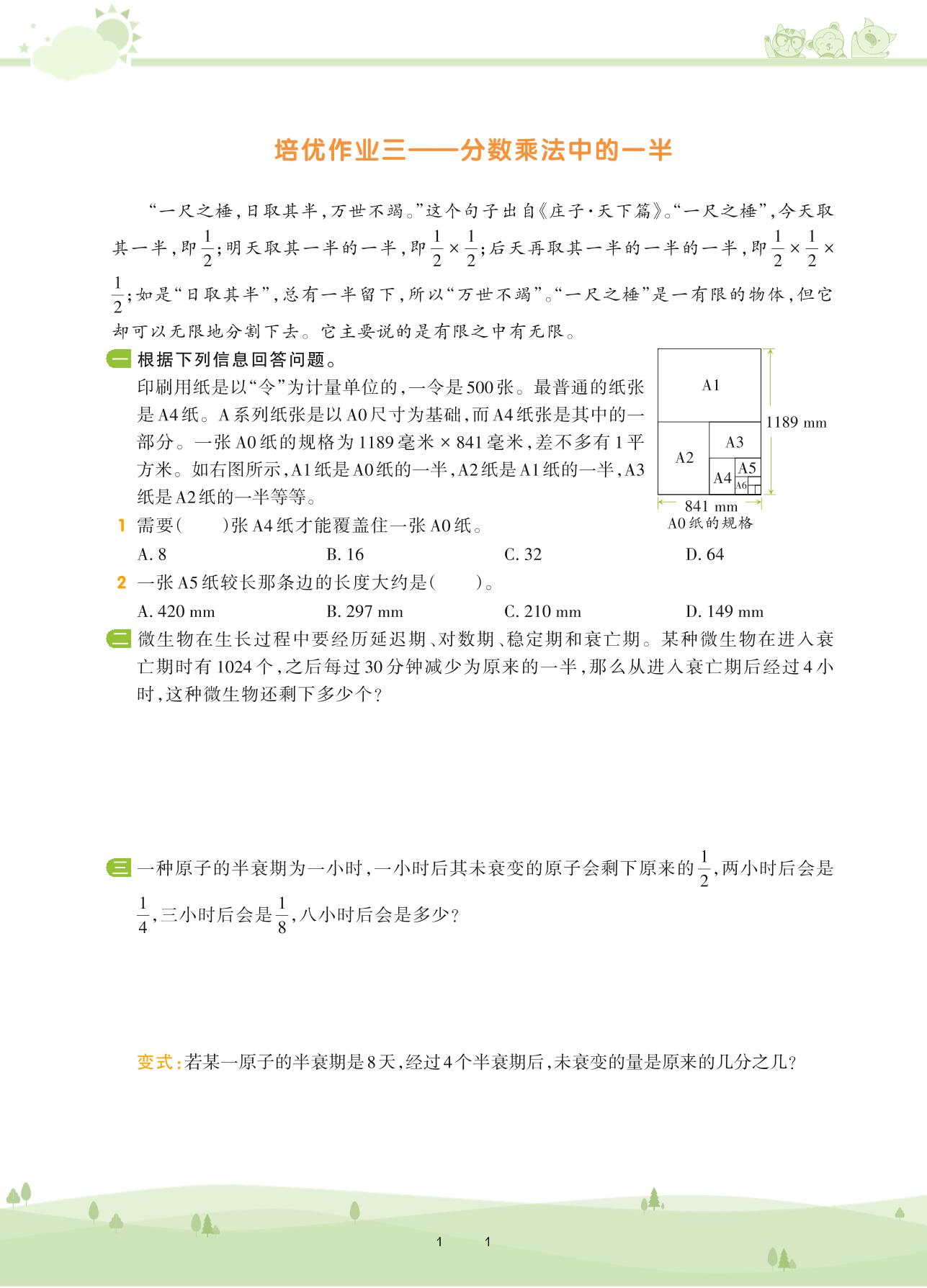 2020上册六年级数学人教版 第一单元 分数乘法——培优作业三 分数乘法中的一半