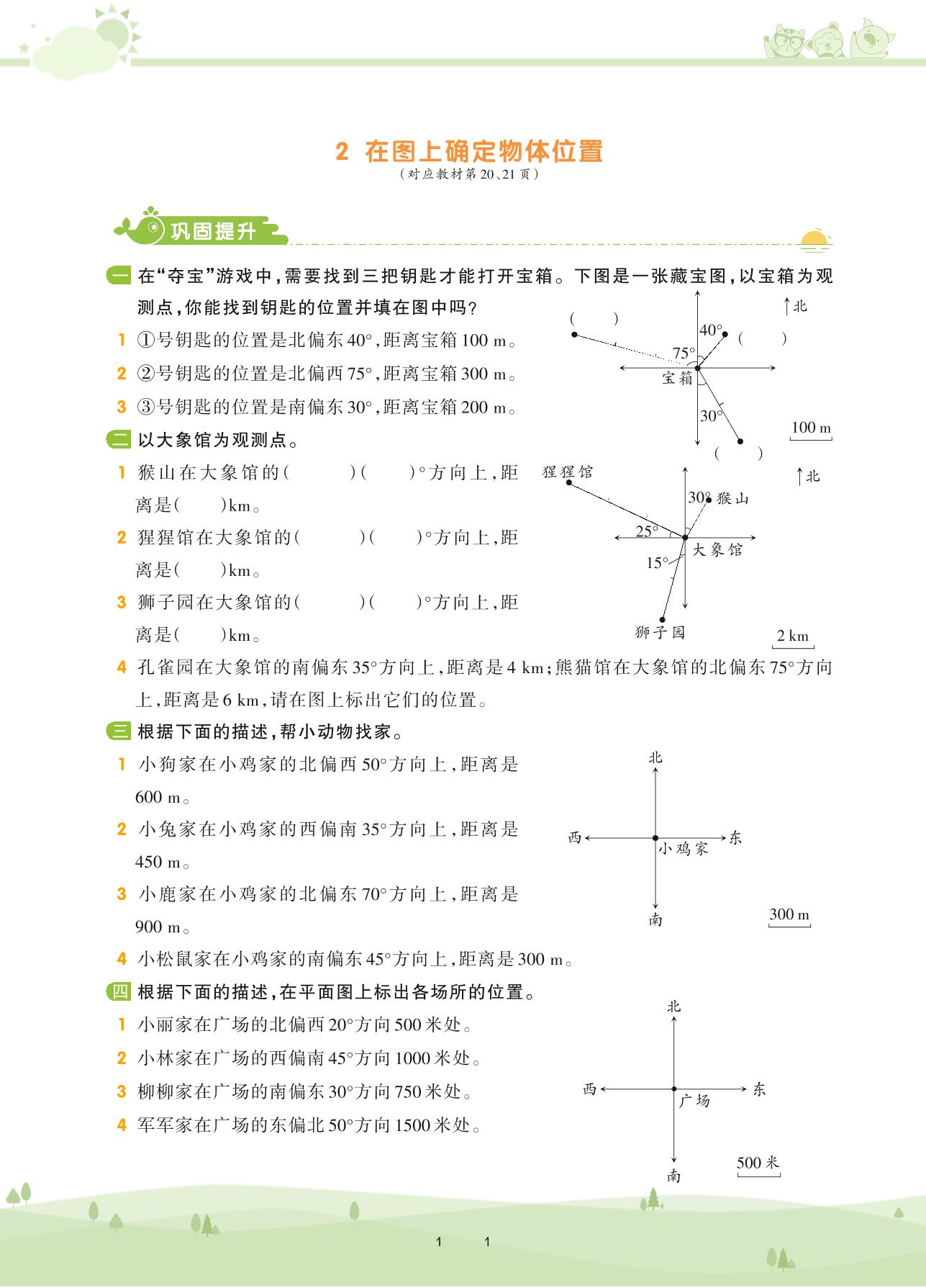 2020上册六年级数学人教版 第二单元 位置与方向(二)——2 在图上确定物体位置