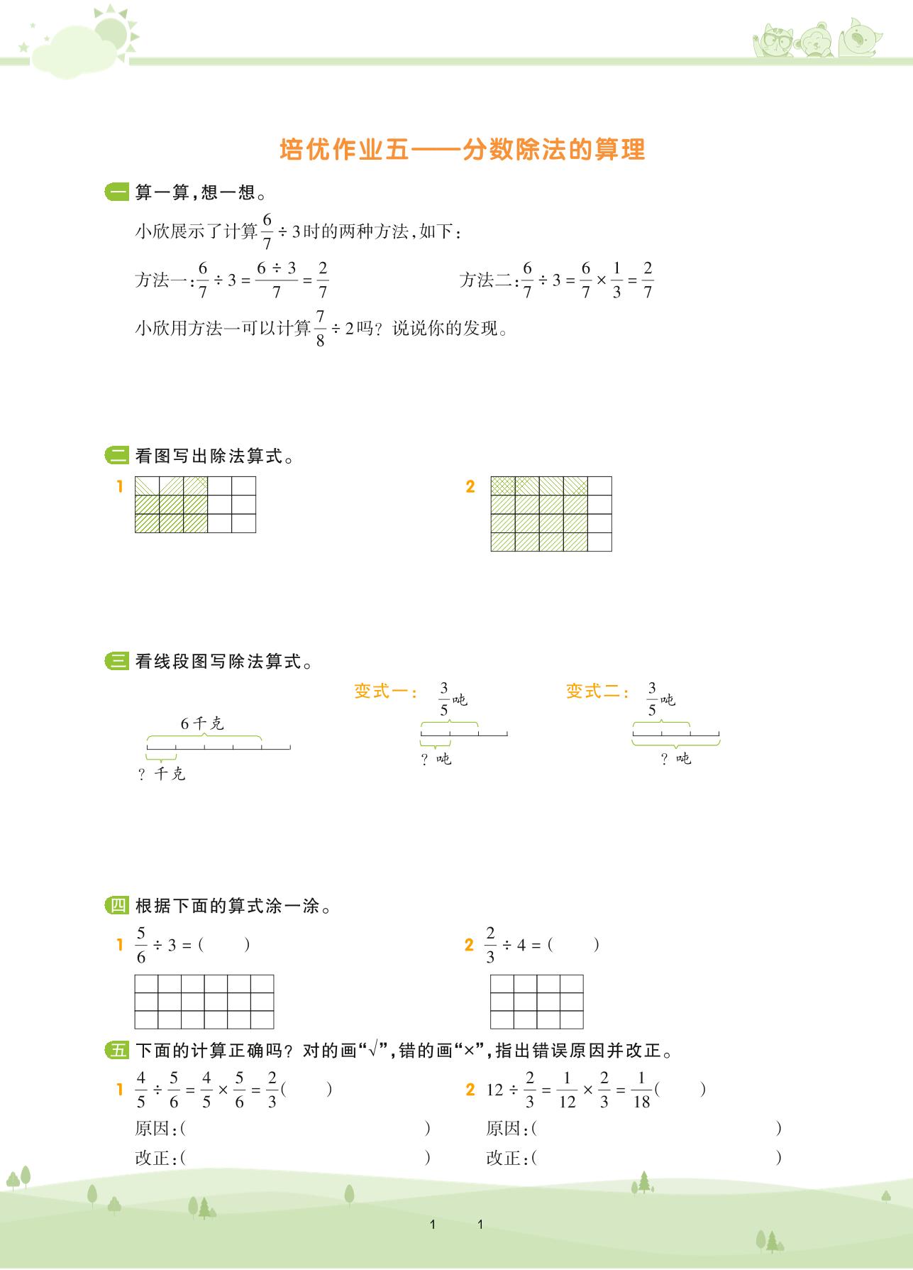 2020上册六年级数学人教版 第三单元 分数除法——培优作业五 分数除法的算理