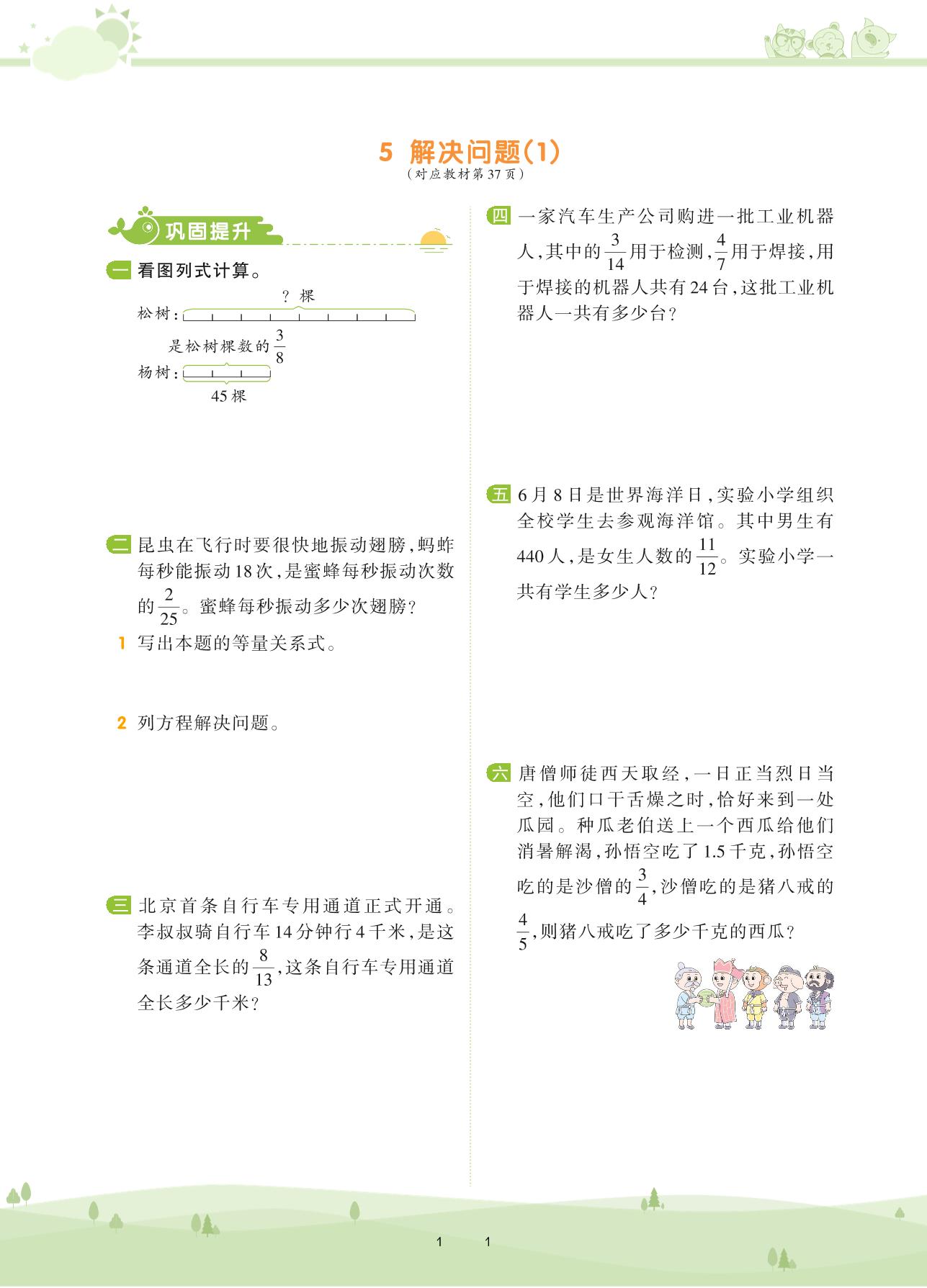2020上册六年级数学人教版 第三单元 分数除法——5 解决问题(1)