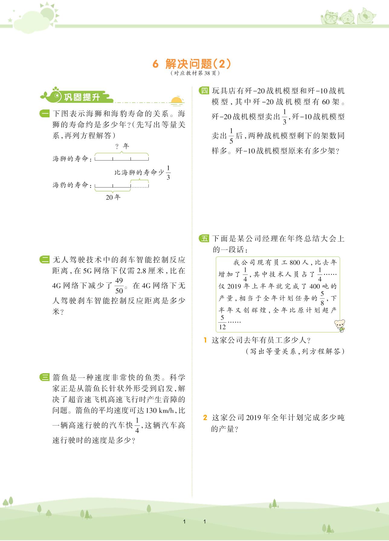 2020上册六年级数学人教版 第三单元 分数除法——6 解决问题(2)