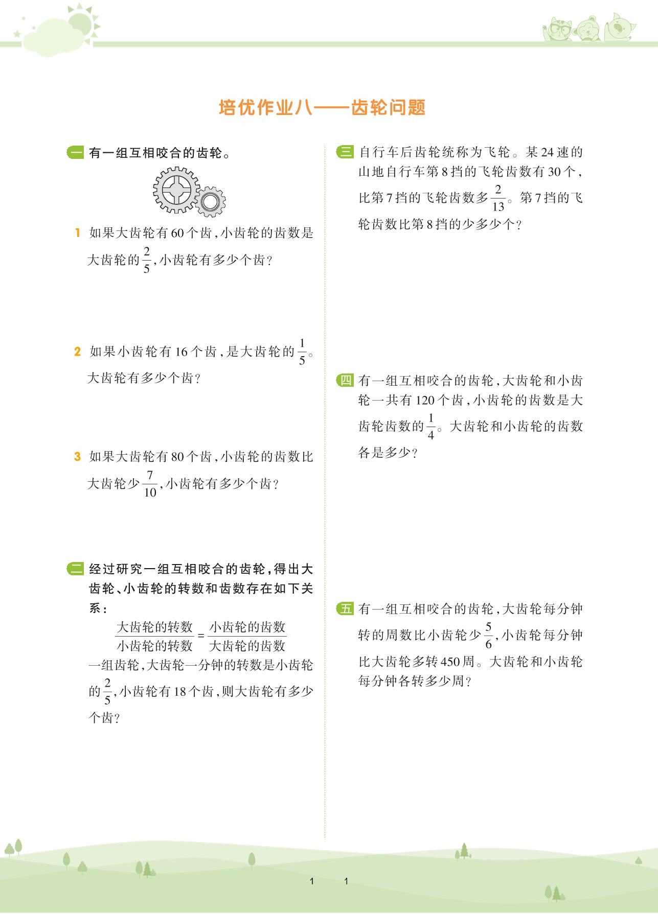 2020上册六年级数学人教版 第三单元 分数除法——培优作业八 齿轮问题