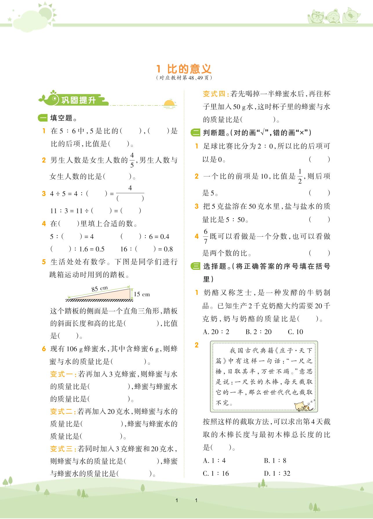 2020上册六年级数学人教版 第四单元 比——1 比的意义