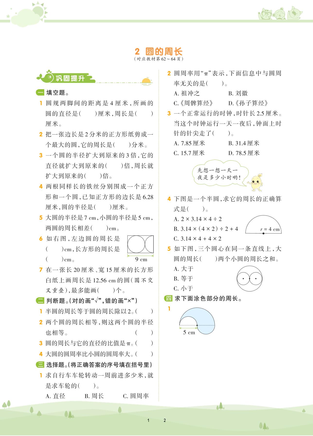 2020上册六年级数学人教版 第五单元 圆——2 圆的周长
