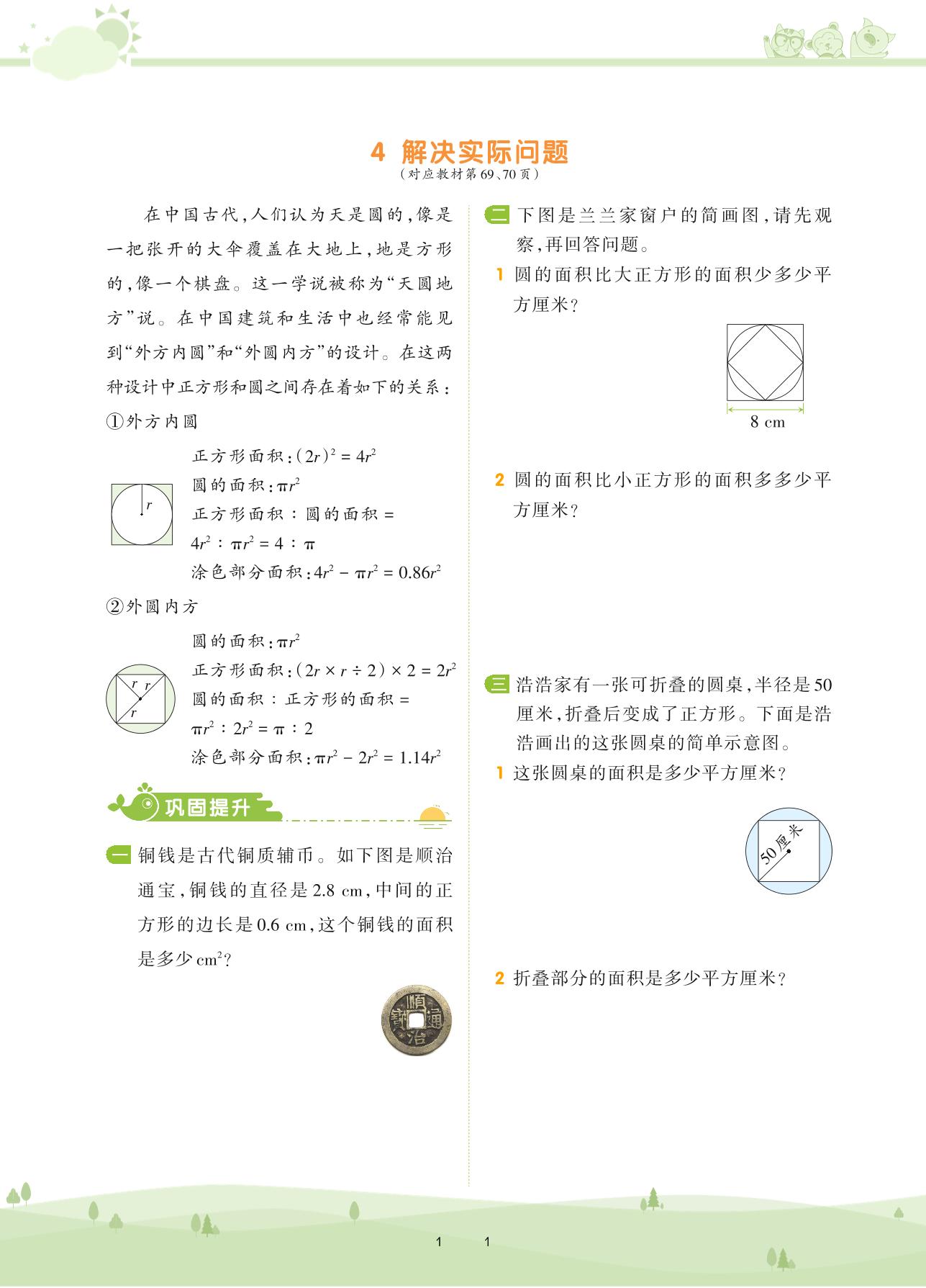 2020上册六年级数学人教版 第五单元 圆——4 解决实际问题