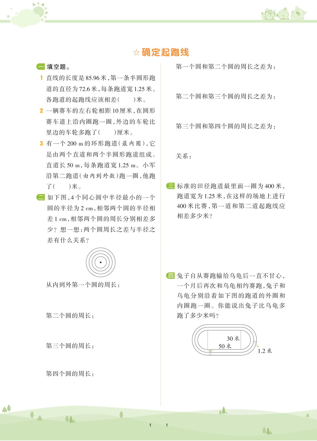 2020上册六年级数学人教版 第五单元 圆——☆确定起跑线