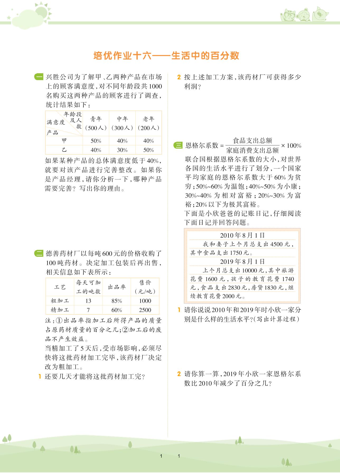 2020上册六年级数学人教版 第六单元 百分数(一)——培优作业十六 生活中的百分数