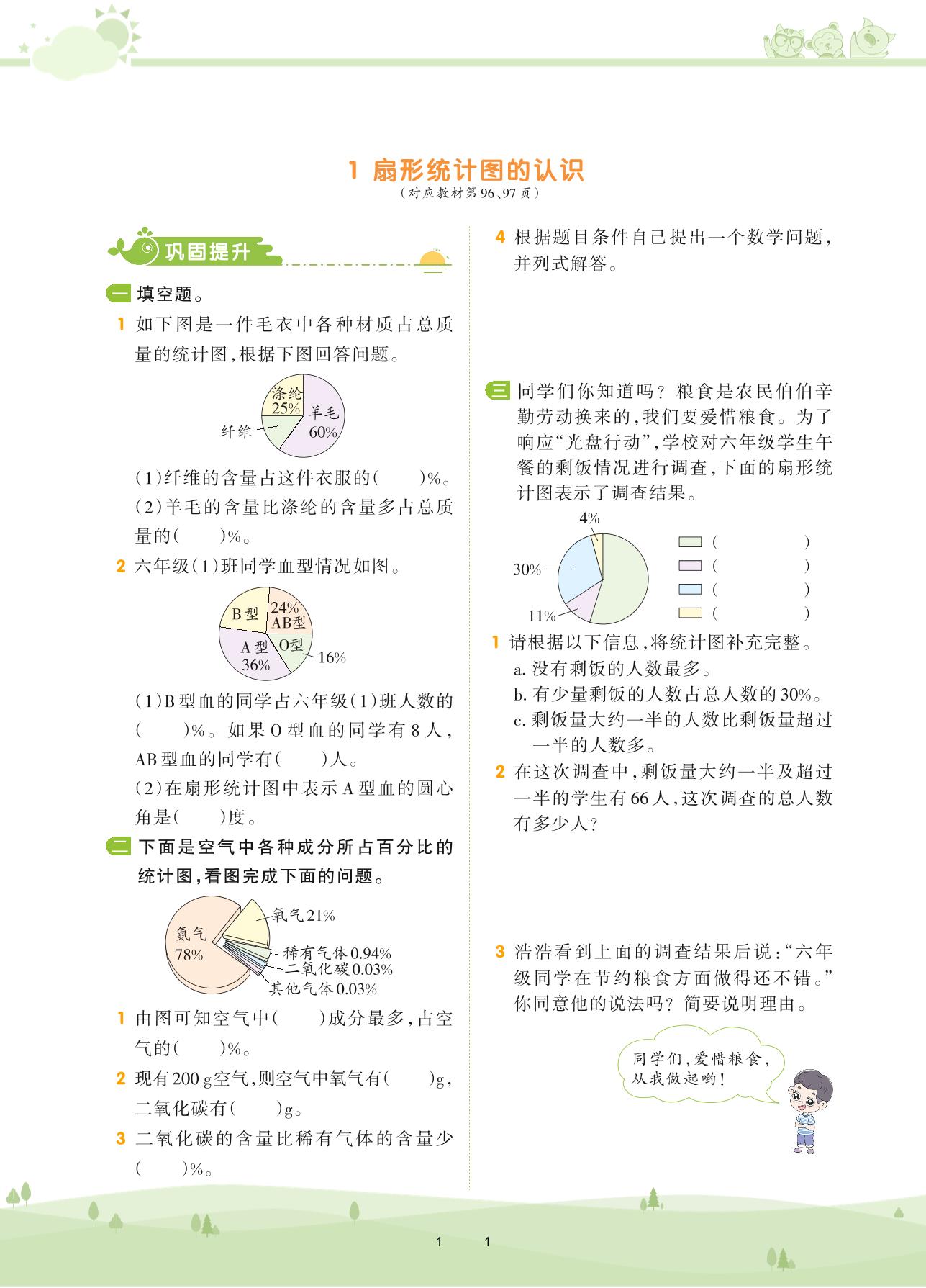 2020上册六年级数学人教版 第七单元 扇形统计图——1 扇形统计图的认识