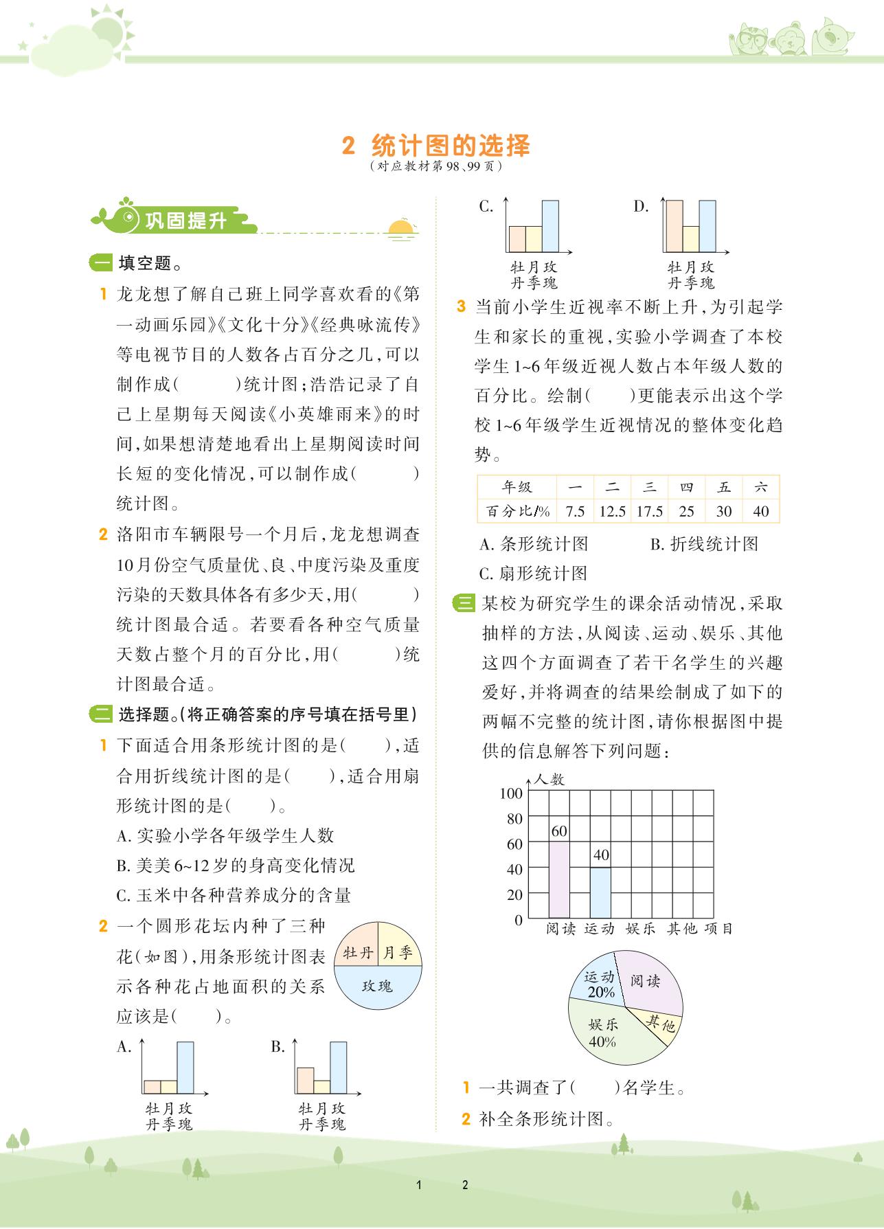 2020上册六年级数学人教版 第七单元 扇形统计图——2 统计图的选择