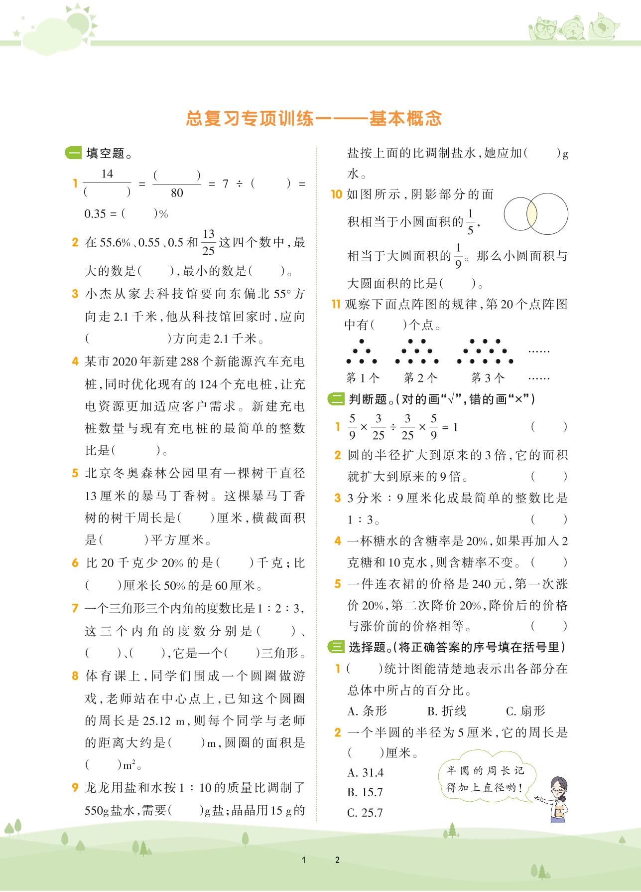 2020上册六年级数学人教版 第九单元 总复习——基本概念