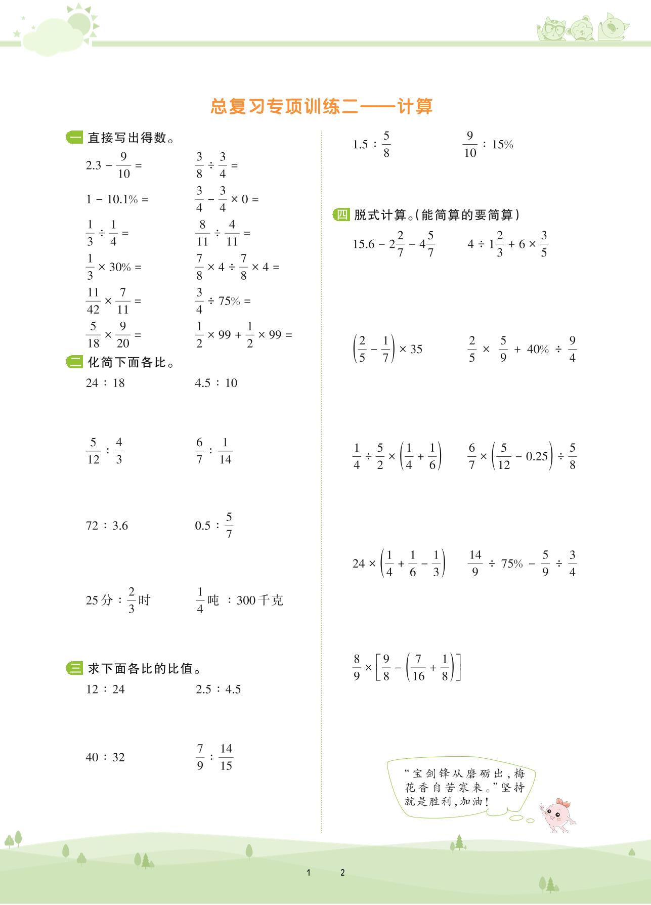 2020上册六年级数学人教版 第九单元 总复习——计算