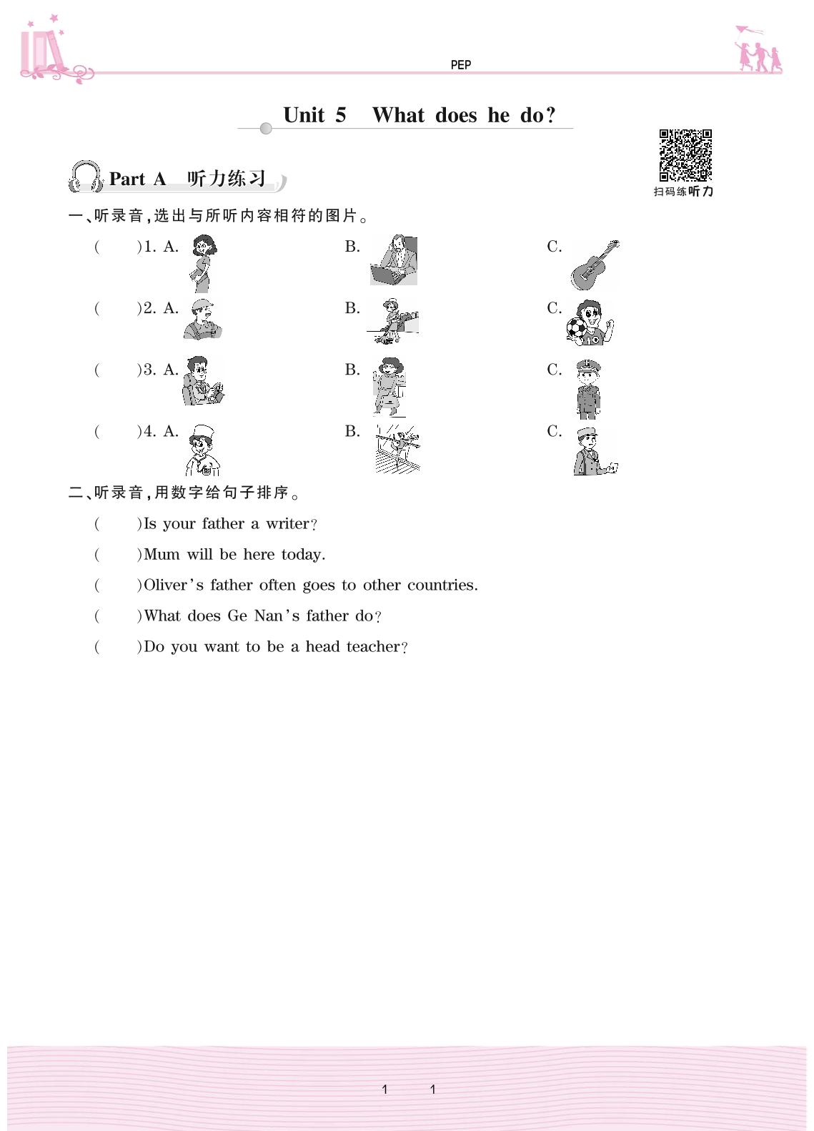2020上册六年级英语PEP版 Unit 5 What does he do?—Part A听力练习