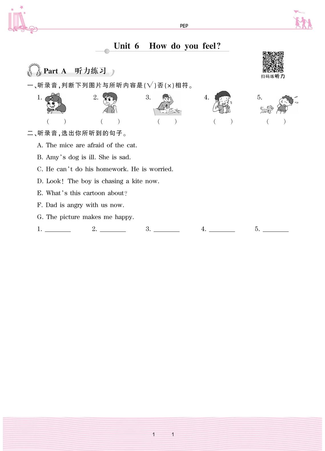 2020上册六年级英语PEP版 Unit 6 How do you feel?—Part A听力练习