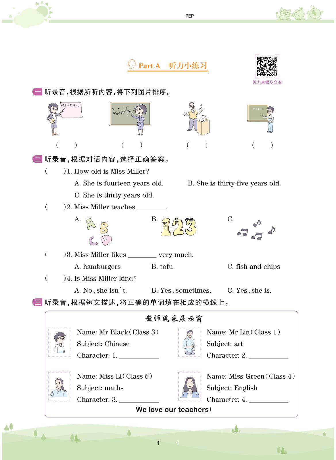 2020上册五年级英语PEP版 Unit 1 What’s he like?—Part A 听力小练习
