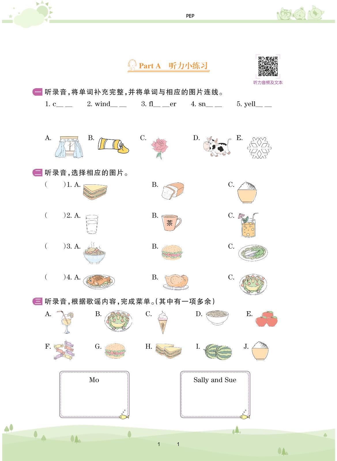 2020上册五年级英语PEP版 Unit 3 What would you like?—Part A 听力小练习