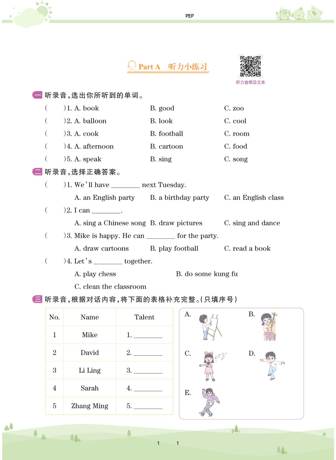 2020上册五年级英语PEP版 Unit 4 What can you do?—Part A 听力小练习