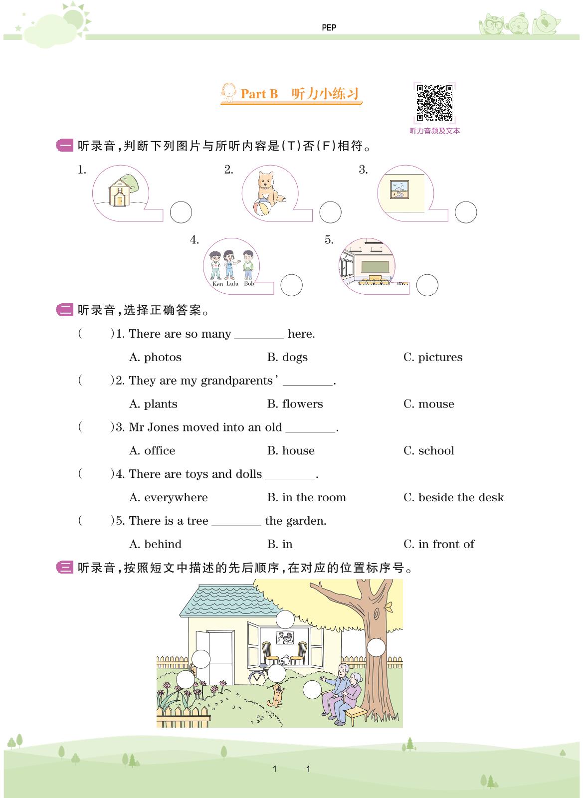 2020上册五年级英语PEP版 Unit 5 There is a big bed—Part B 听力小练习