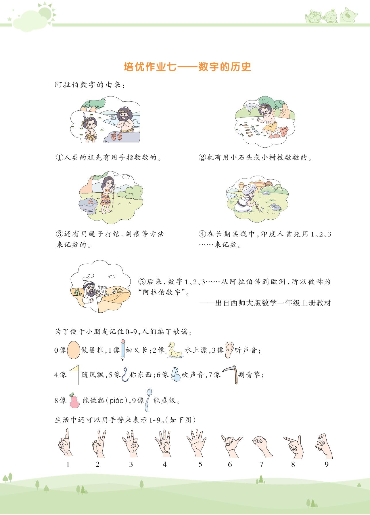 2020上册一年级数学苏教版 第五单元 认识10以内的数——培优作业七——数字的历史