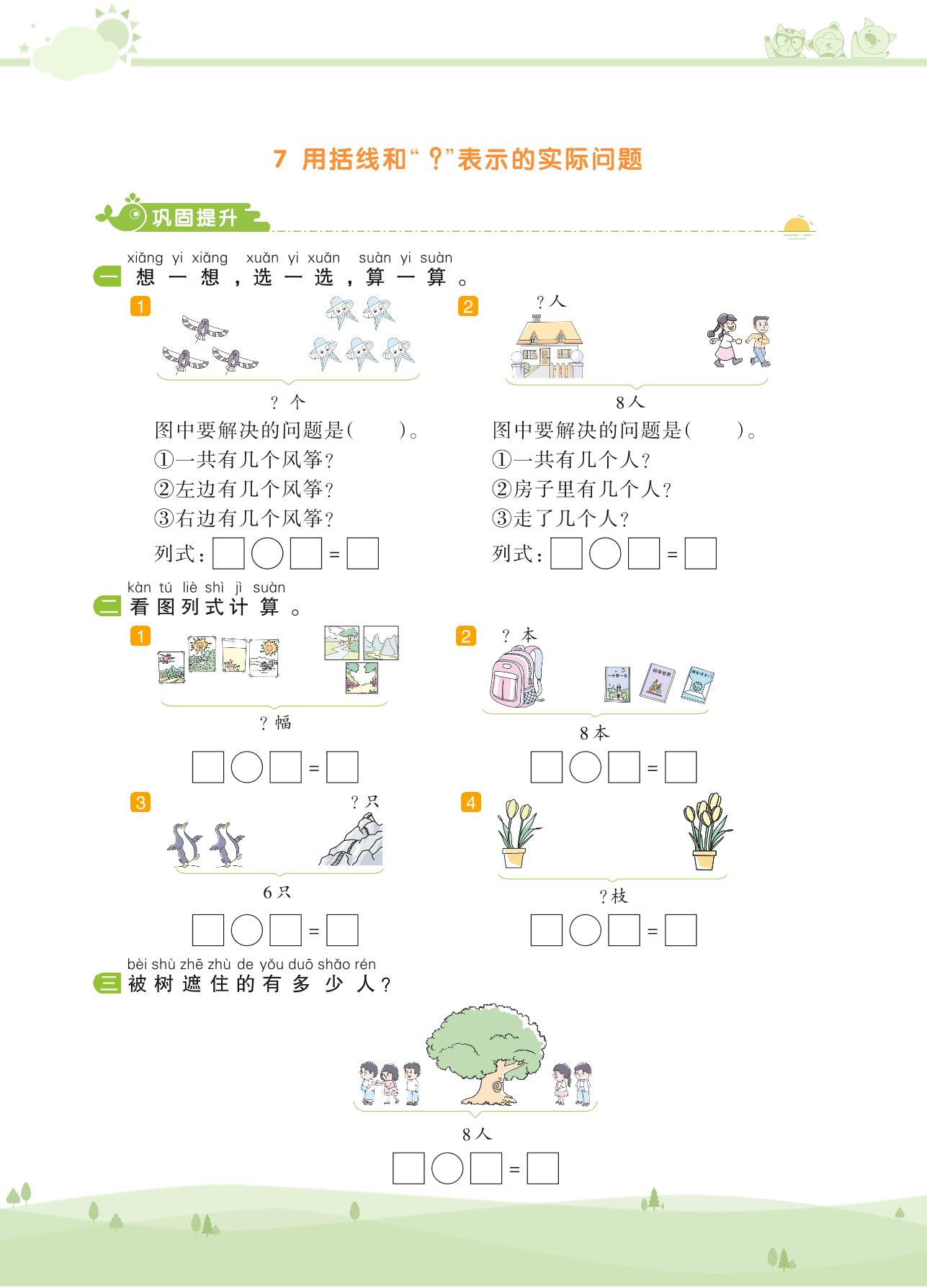 2020上册一年级数学苏教版 第八单元 10以内的加法和减法——7 用括线和“?”表示的实际问题