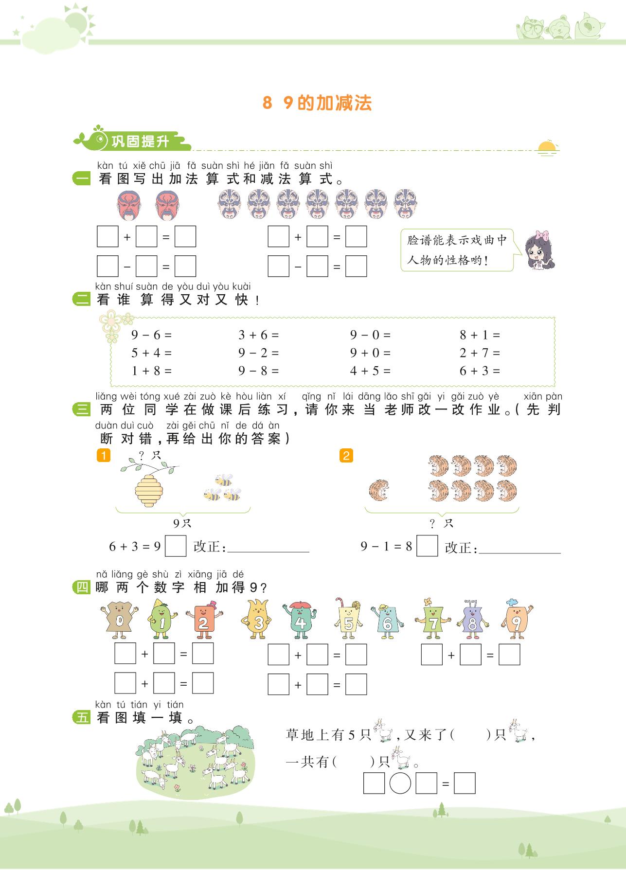 2020上册一年级数学苏教版 第八单元 10以内的加法和减法——8 9的加减法