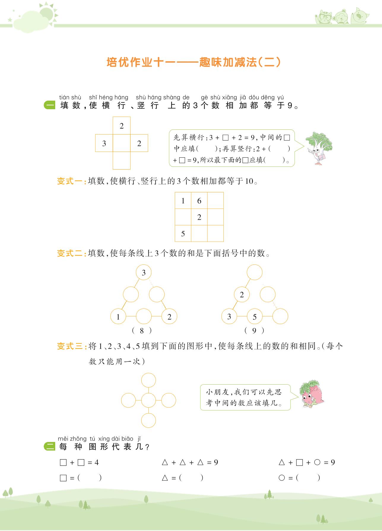 2020上册一年级数学苏教版 第八单元 10以内的加法和减法——培优作业十一——趣味加减法(二)