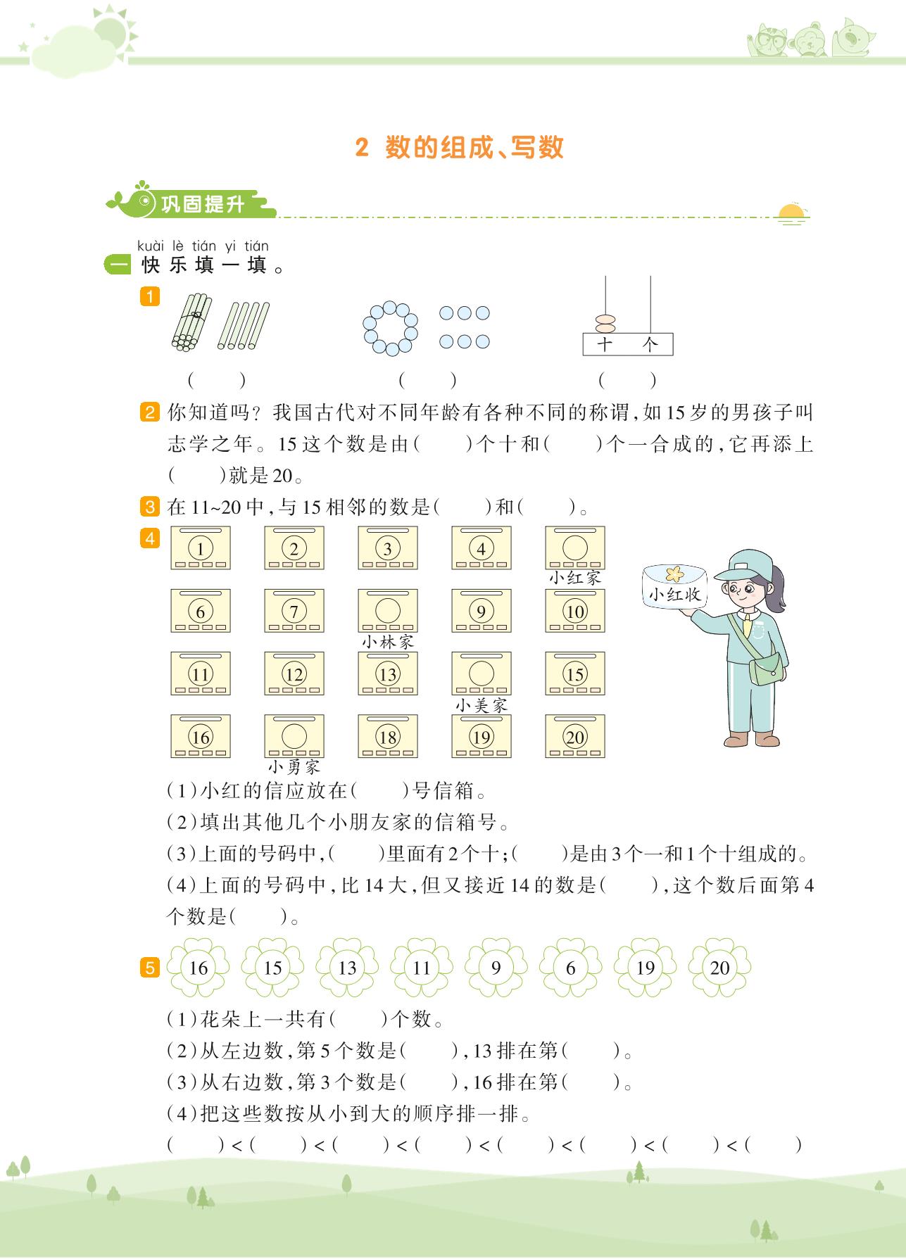 2020上册一年级数学苏教版 第九单元 认识11~20各数——2 数的组成、写数