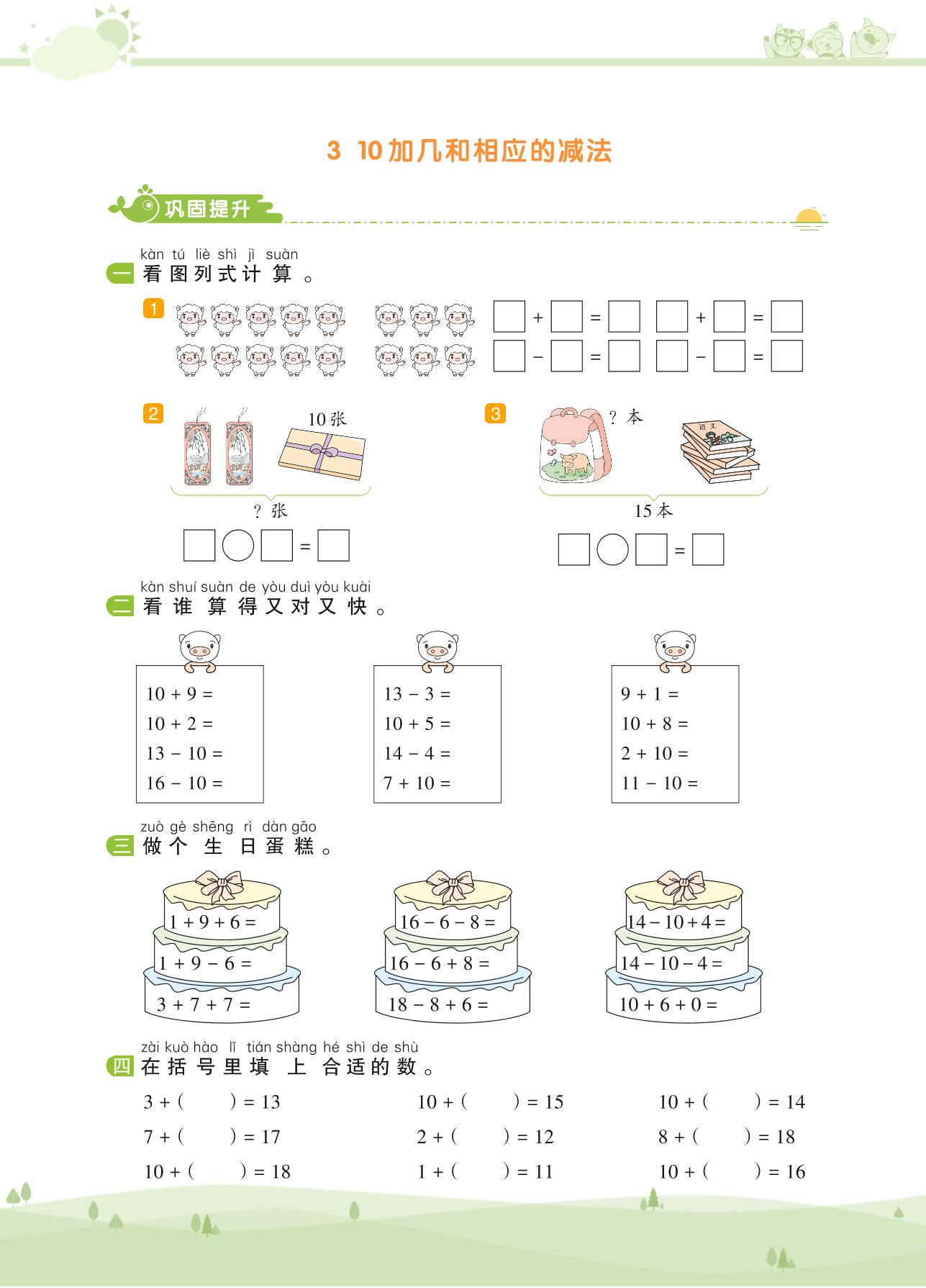 2020上册一年级数学苏教版 第九单元 认识11~20各数——3 10加几和相应的减法
