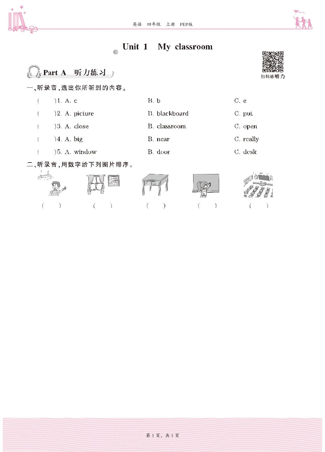 2020上册四年级英语PEP版 Unit 1 My classroom—Part A 听力练习