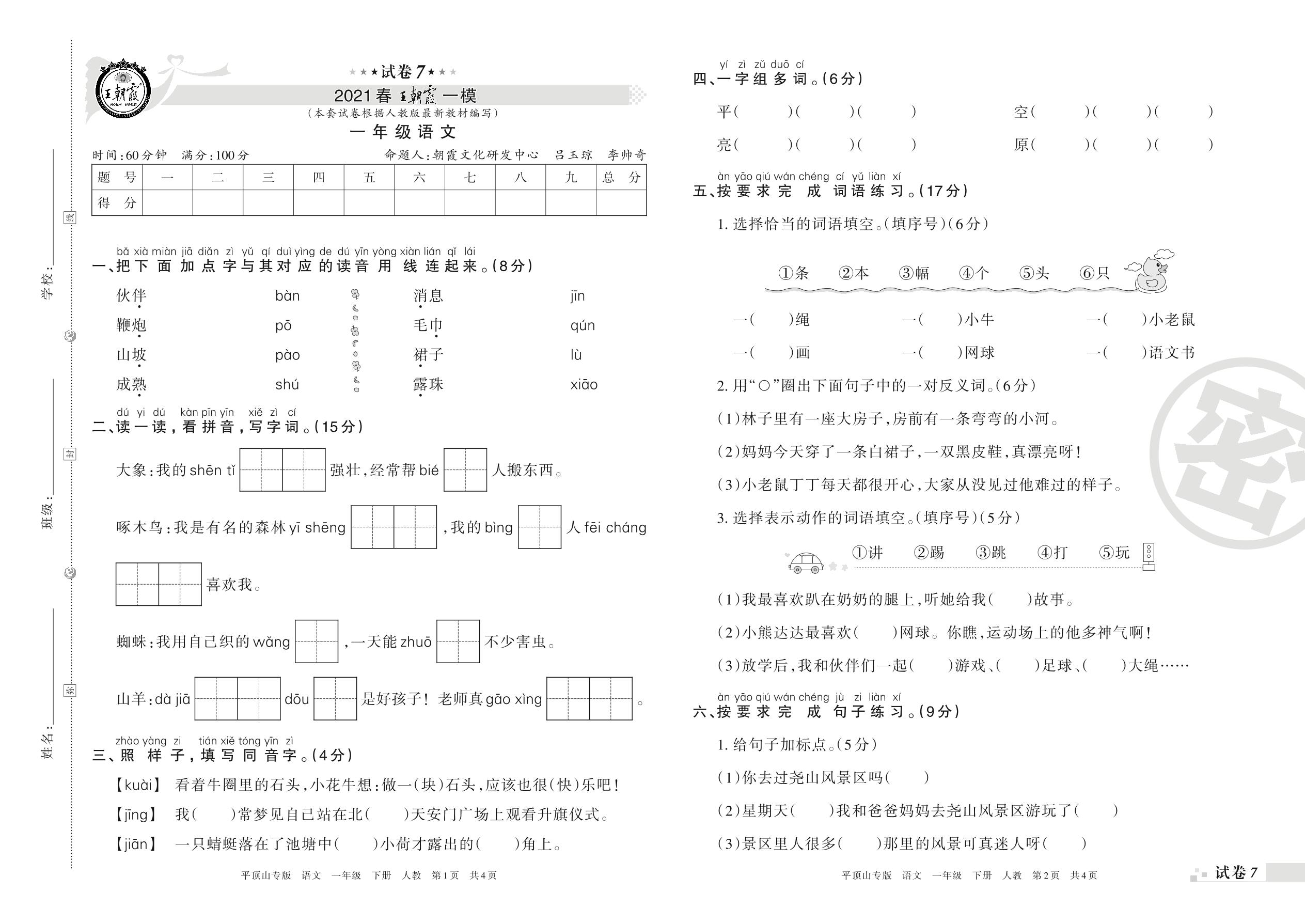 王朝霞期末模拟卷一年级下册语文(人教版)_R210731172900【7】