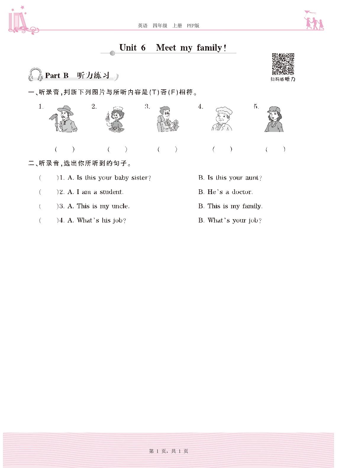 2020上册四年级英语PEP版 Unit 6 Meet my family!—Part B 听力练习