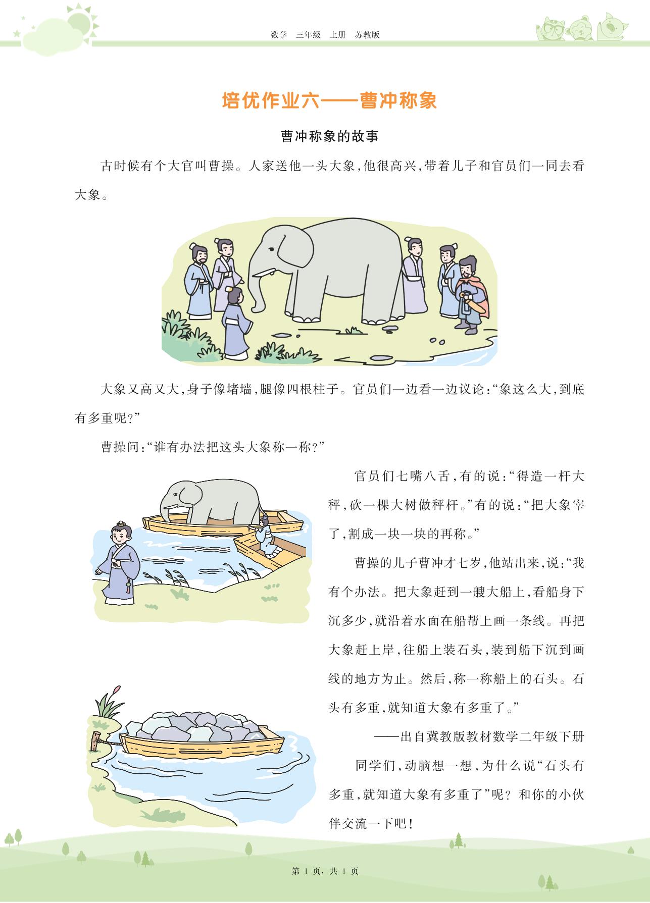 2020上册三年级数学苏教版 第二单元 千克和克——培优作业六 曹冲称象