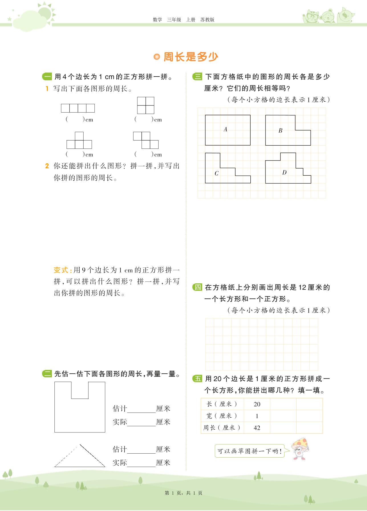 2020上册三年级数学苏教版 第三单元 长方形和正方形——周长是多少
