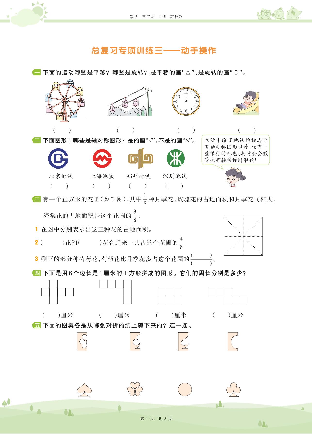 2020上册三年级数学苏教版 第八单元 期末复习——动手操作