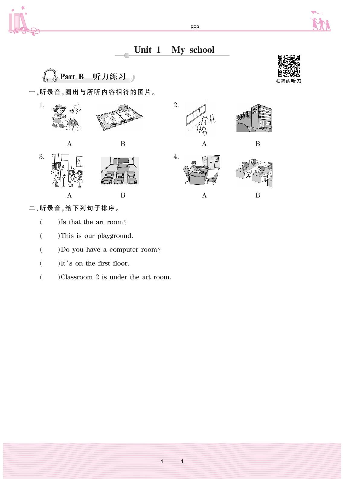 2021下册四年级英语PEP版 Unit 1 My school—Part B 听力练习