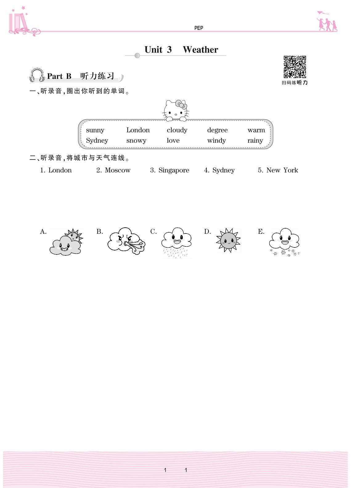 2021下册四年级英语PEP版 Unit 3 Weather—Part B 听力练习