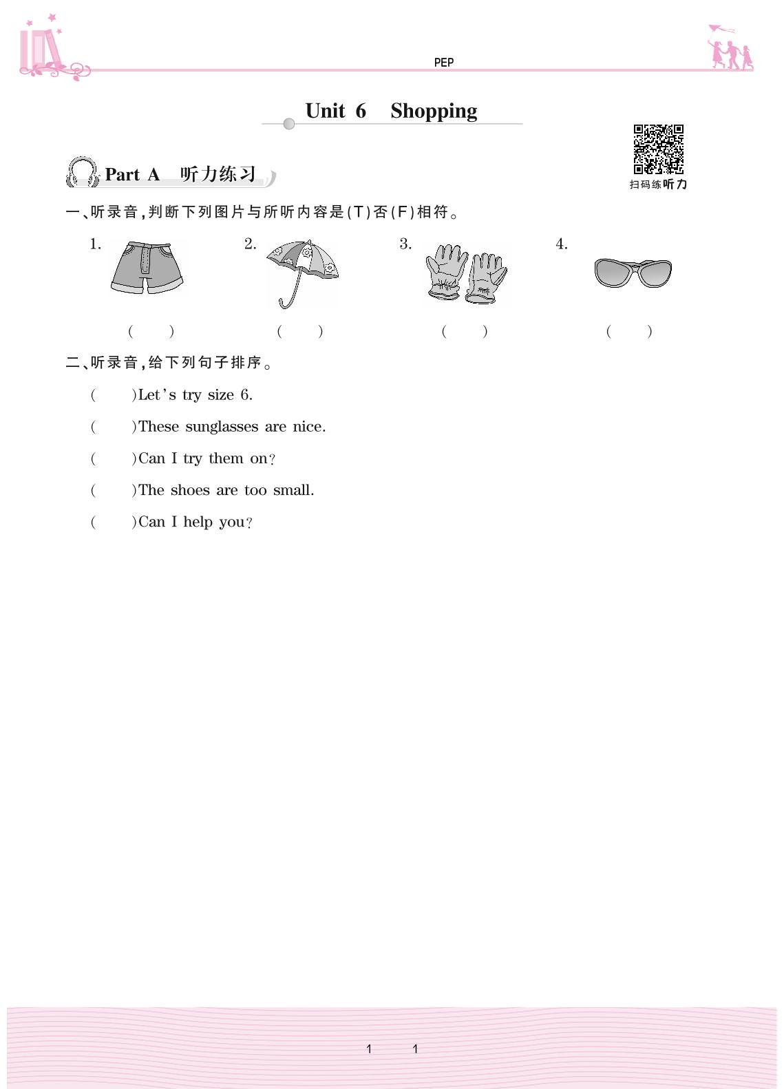 2021下册四年级英语PEP版 Unit 6 Shopping—Part A 听力练习