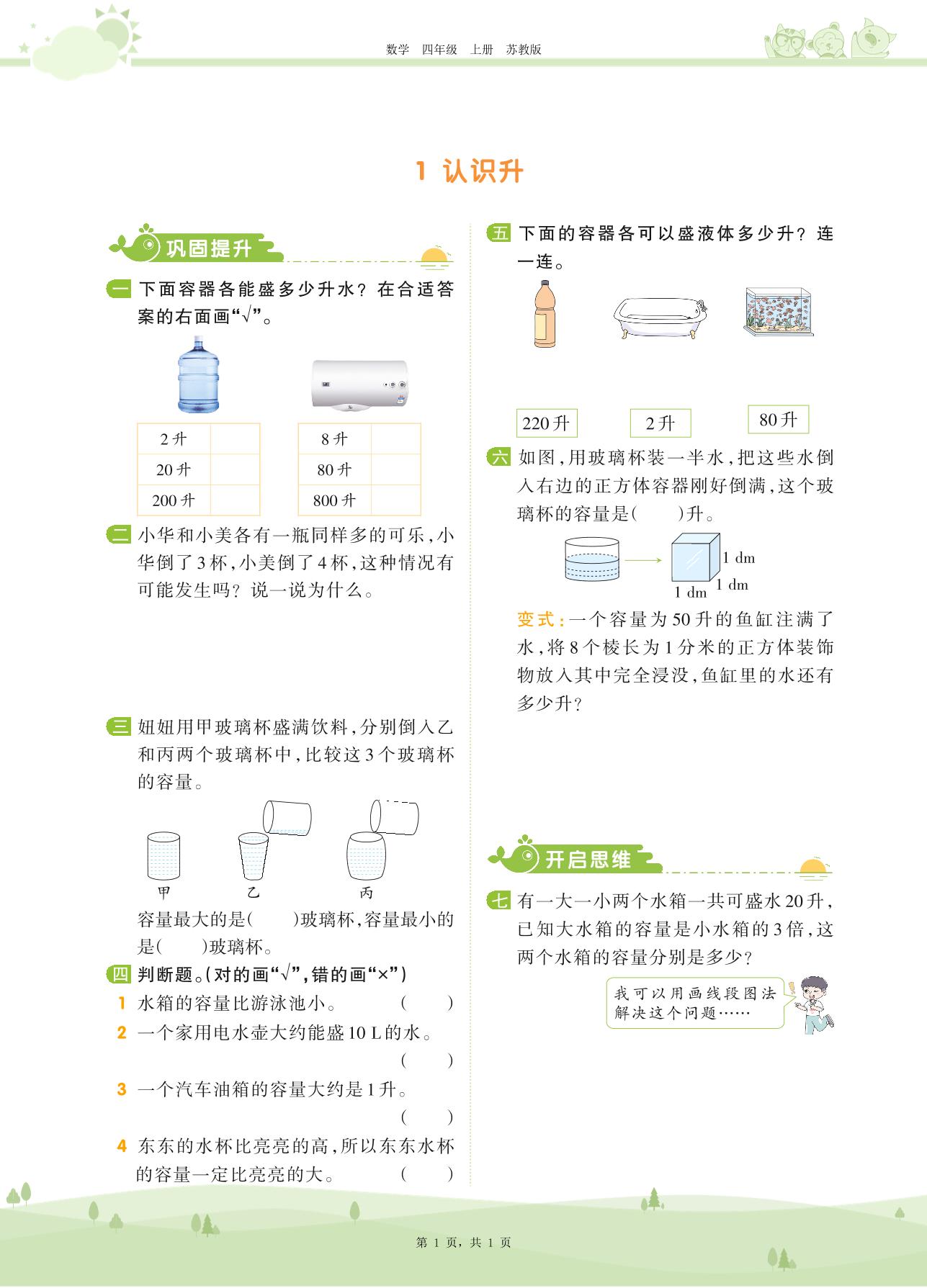 2020上册四年级数学苏教版 第一单元 升和毫升——1 认识升